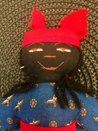 Title (ebay affiliate link): Antique Vtg African American Black Americana Fabric Rag Doll Stitched Face 6"