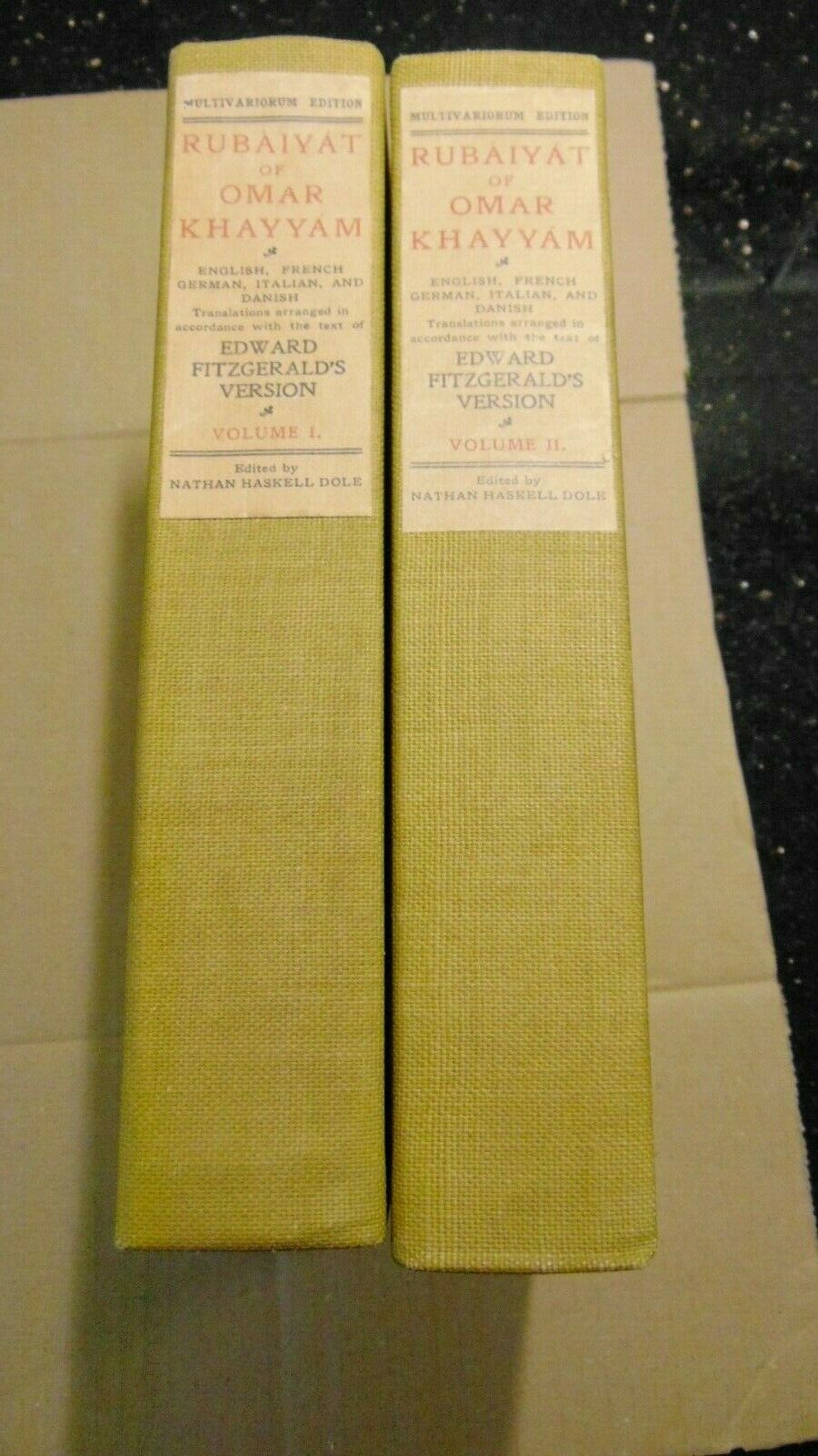 Title (ebay affiliate link): 1905 TWO VOLUMES RUBAIYAT OF OMAR KHAYYYAM ILLUSTRATED BY GILBERT JAMES