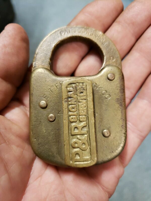 Title (ebay affiliate link): Rare Antique Vintage Brass Fraim Padlock P&R Signal Service No Key Old Locksmith