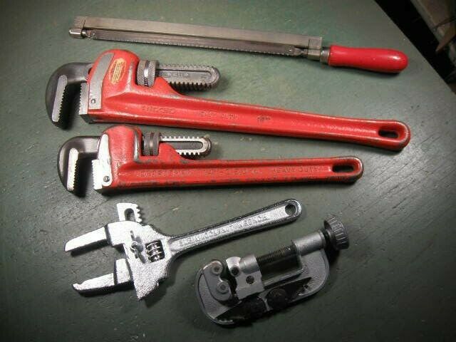 OLD USED MECHANICS TOOLS PLUMBING RIDGID PIPE WRENCHES CRAFTSMAN GROUP