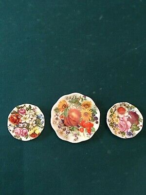 3 Antique Staffordshire England Fine Bone China Butter Pats Flowers/Fruit