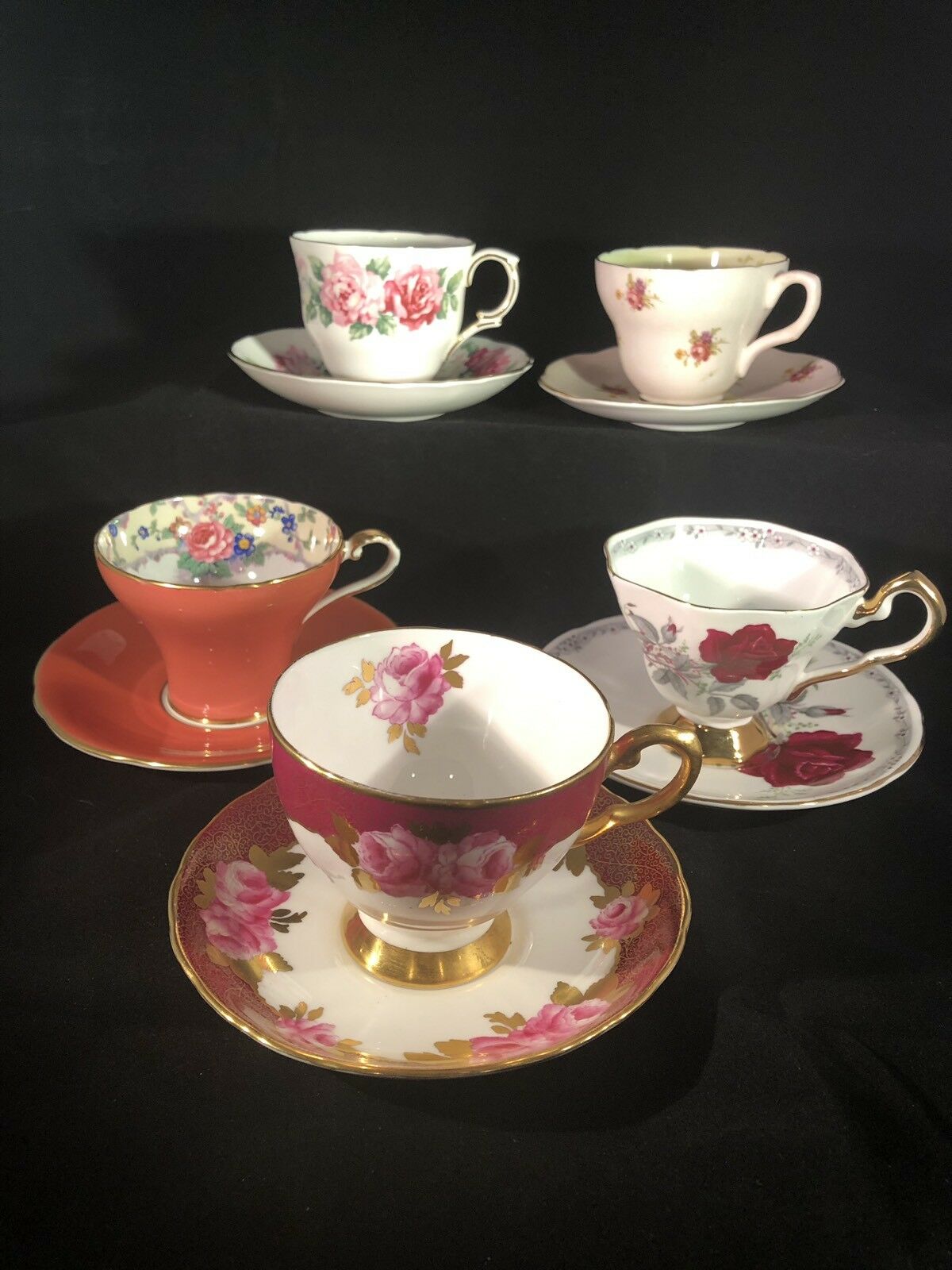 (5) Rose Pattern fine china teacups and saucers - Foley, Tuscan, Aynsely...