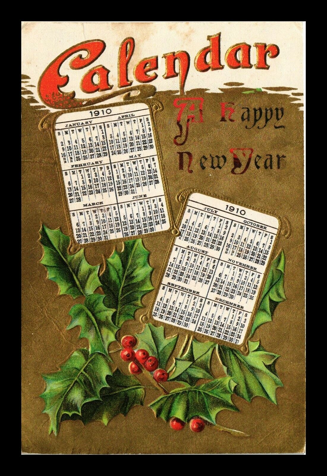 Title (ebay affiliate link): DR JIM STAMPS US CALENDAR PAGES HOLLY NEW YEAR EMBOSSED HOLIDAY POSTCARD 1910