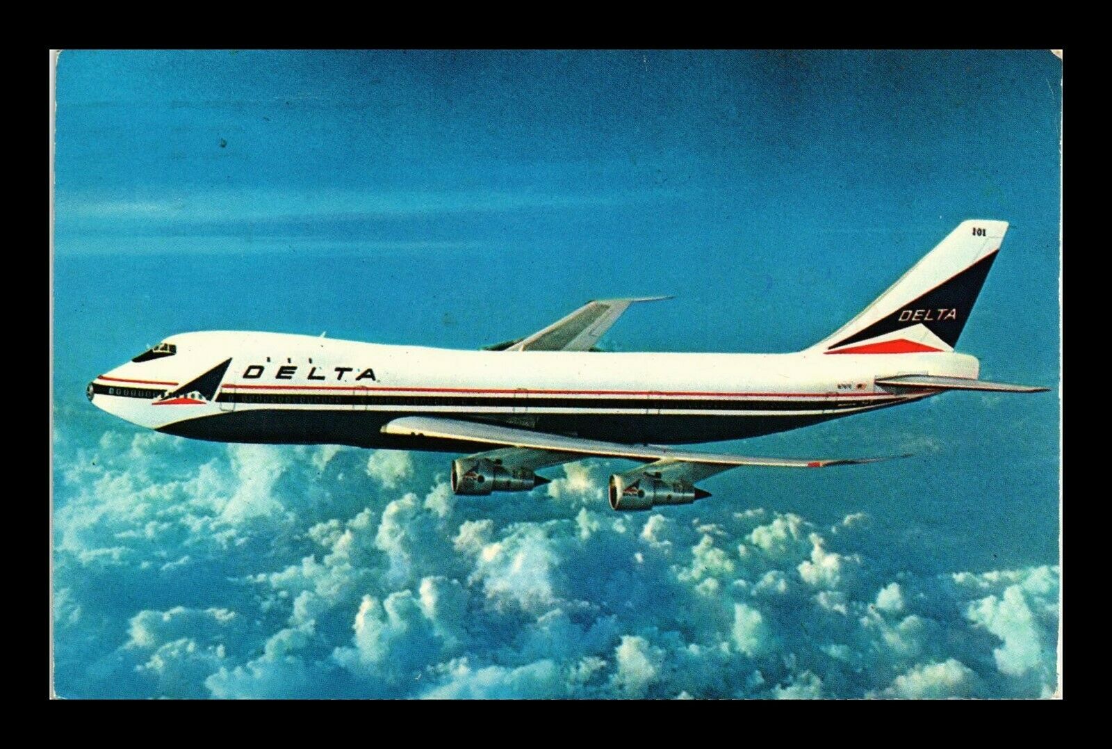 DR JIM STAMPS US DELTA BOEING 747 SUPERJET AIRPLANE POSTCARD TRANSPORTATION 1974
