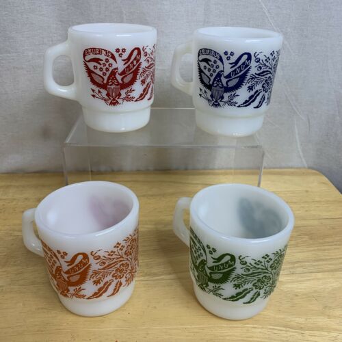 Vintage Anchor Hocking Fire King Coffee Mugs E Pluribus Unum Milk Glass Lot of 4