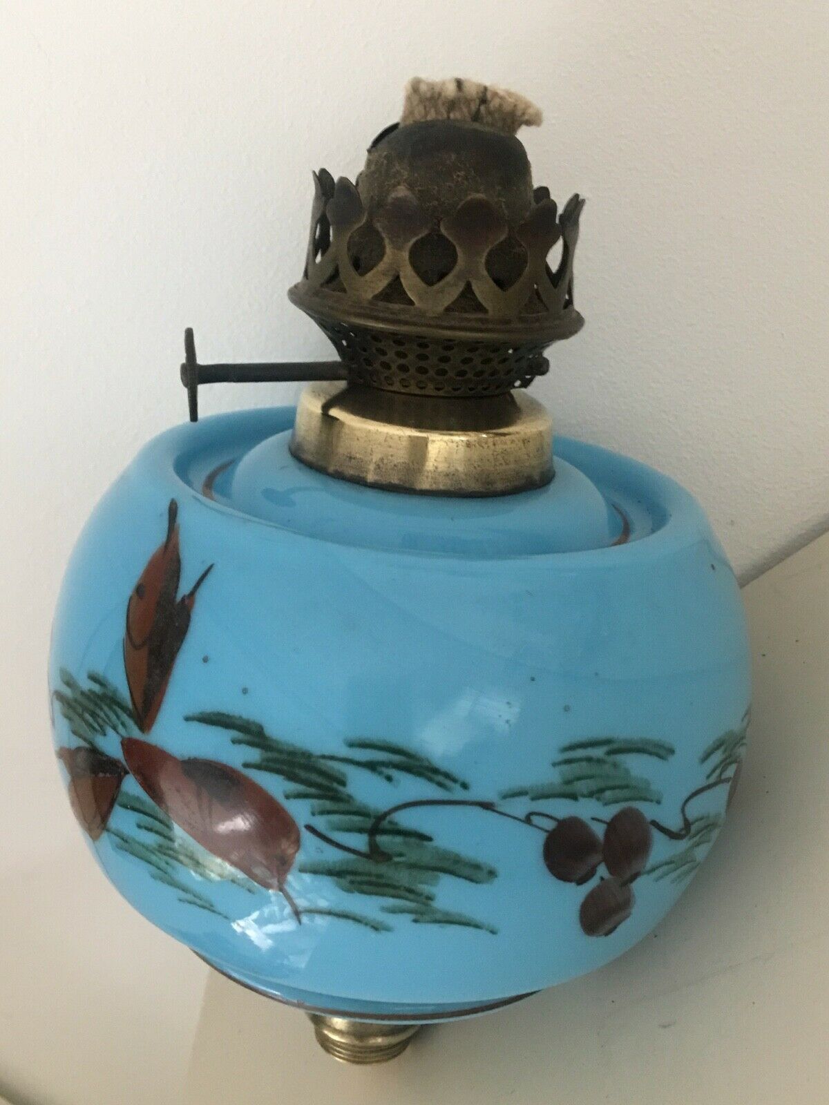 Title (ebay affiliate link): antique small blue hand painted flowers oil lamp fount with single wick burner