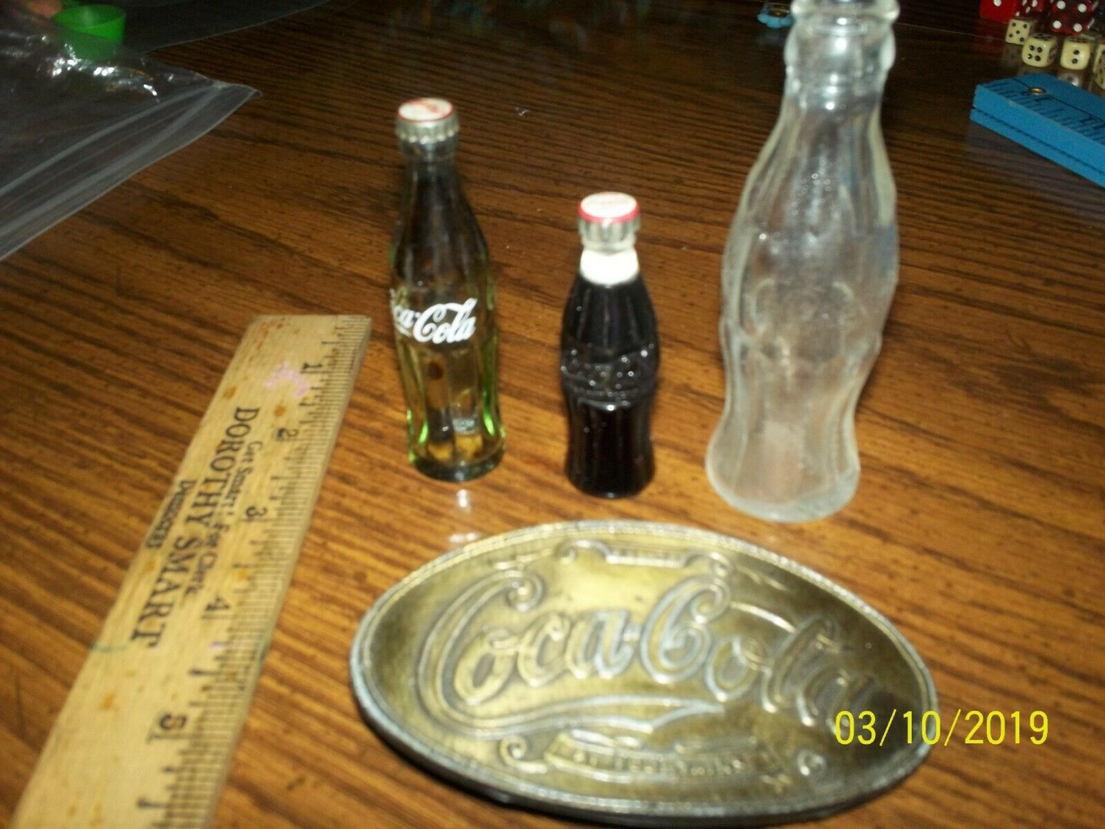 Title (ebay affiliate link): Lot of vintage 2 coca cola mini bottles, a mini bottle lighter, and a belt buck