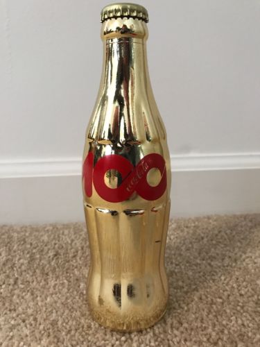 Title (ebay affiliate link): 1986 Coca Cola 100th Centennial Celebration Gold Bottle & Red Bag - Atlanta GA