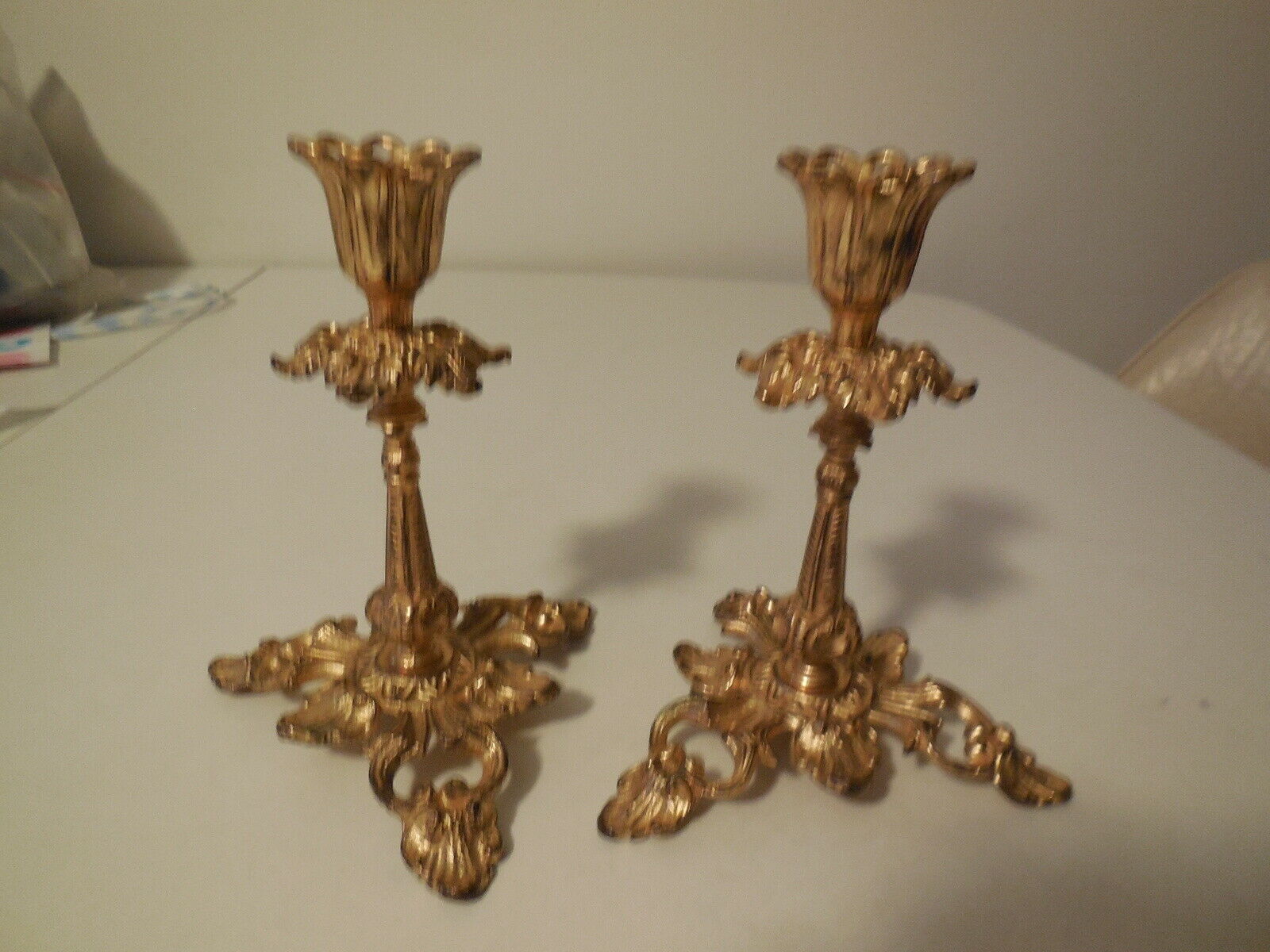 Antique Pair Early Gold Gilt Ornate Candlesticks