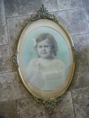 Large 1800''S Painted CHILD PHOTO in METAL ORNATE OVAL FRAME 25"X 15"