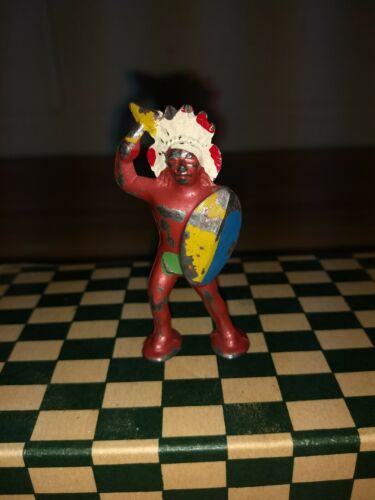 Vintage Dime Store Lead Toy Indian, Head Dress, Tomahawk