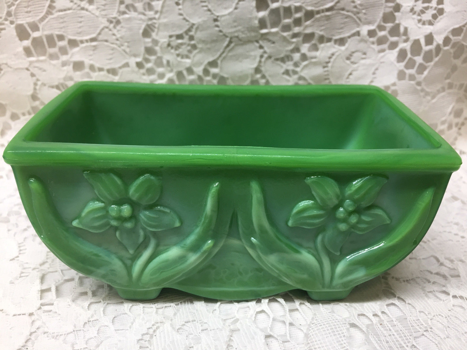 Title (ebay affiliate link): jadeite Green Milk Akro Agate slag glass flower planter jade 657 vase opaque art