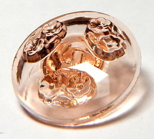 1940''S TRANSPARENT PINK DEPRESSION GLASS BUTTON w/POSY FLOWERS IN RELIEF