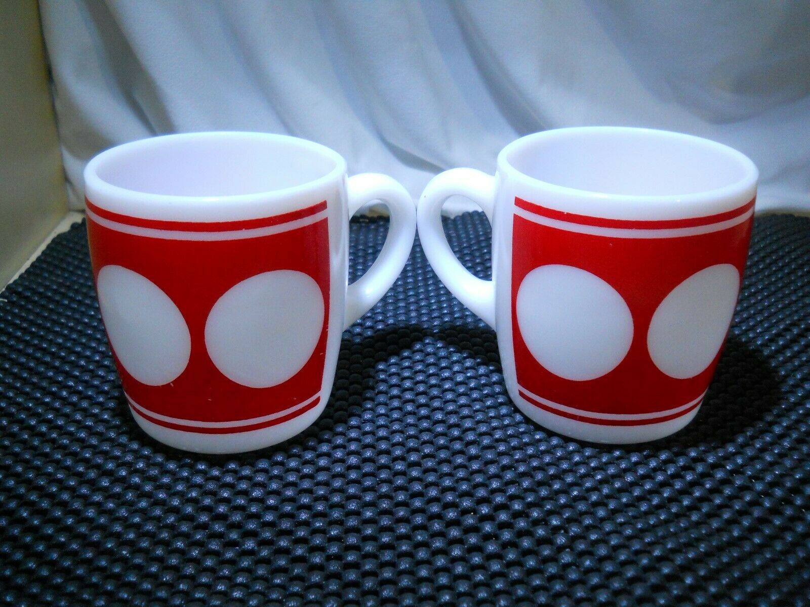 Title (ebay affiliate link): 2 Vintage Hazel Atlas Bullseye / Polka Dot Coffee Mugs / Cups Milk Glass NICE!