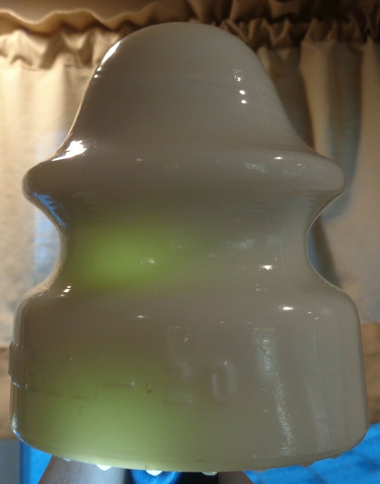 MILK GLASS WITH GREEN TINT GLASS INSULATOR IN EX.COND.