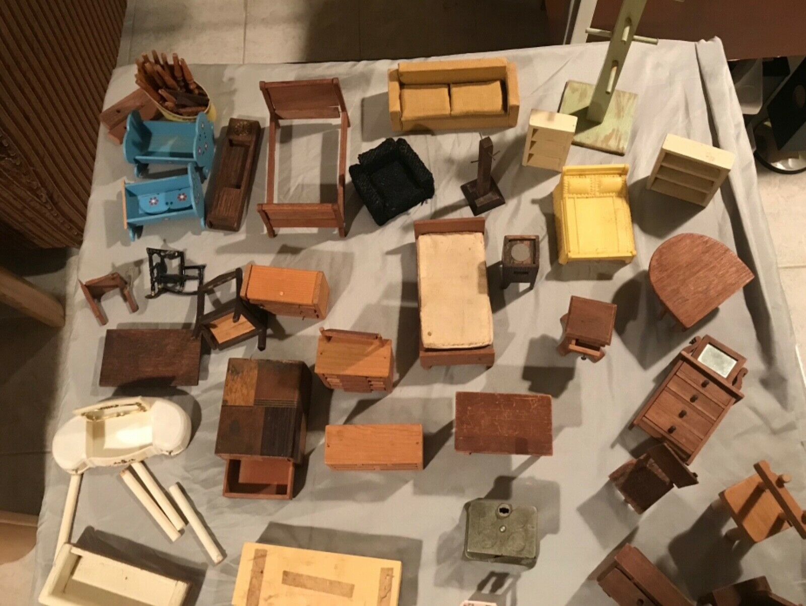 Title (ebay affiliate link): Vintage Doll House Furniture - Large Lot of Wooden & Plastic Furniture