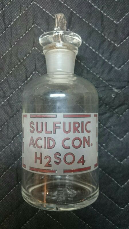 VINTAGE PYREX APOTHECARY BOTTLE W/STOPPER SULFURIC ACID H2SO4 RED LETTERS ACL