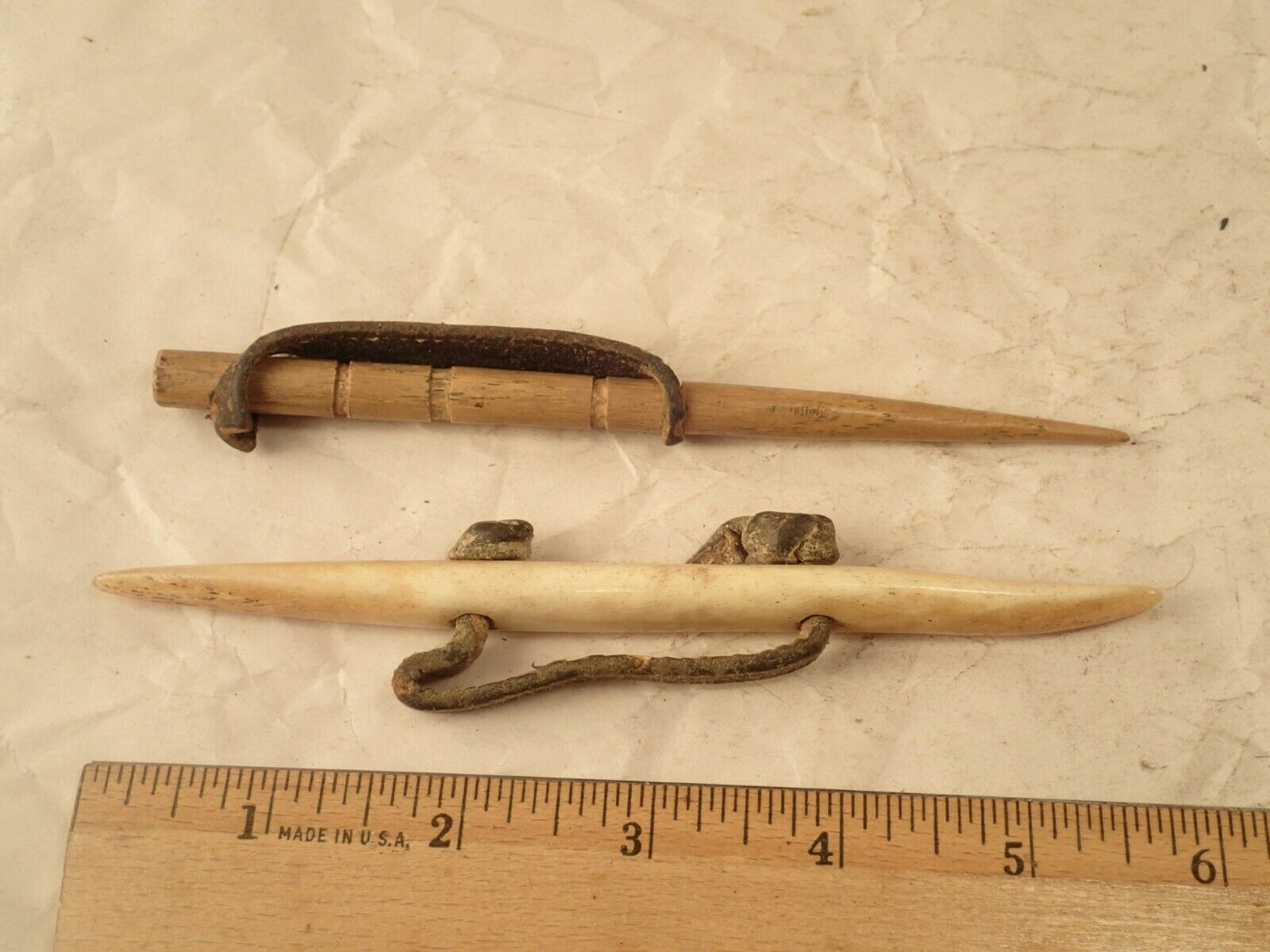 1800''s Primitive Farming Tools, Lot of 2 CORN HUSKING PEGS, Bone & Wood