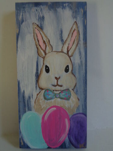Title (ebay affiliate link): HAND PAINTED ART~*~PRIMITIVE PRIM BUNNY & EASTER EGGS~*~SPRING WOOD Board