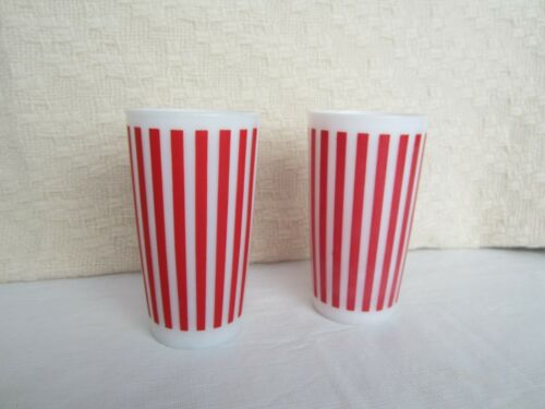 Vintage Hazel Atlas Milk Glass Platonite Red Candy Stripe Tumbler Set of 2