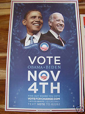 08 ELECTION OBAMA BIDEN 2 POSTERS +SHEET OF 12 STICKERS