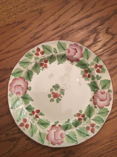 Title (ebay affiliate link): Vibrant 19C Soft Paste Handpainted Sprig Dinner Plate Pink Flowers