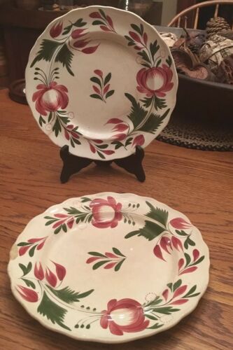 Title (ebay affiliate link): Vibrant 19C Soft Paste Handpainted Sprig Dinner Plate Pink Flowers. Lot Of 2