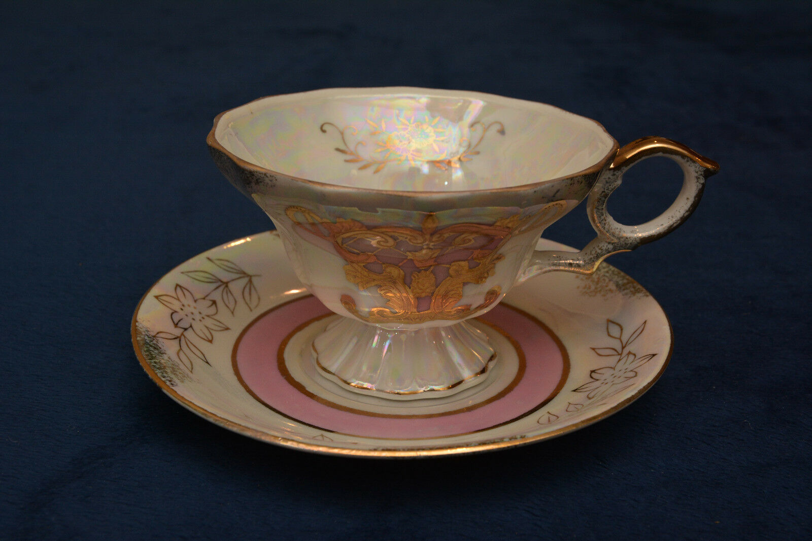 Vintage Sterling China of Japan Tea Cup & Saucer Set MOP with Gold Design