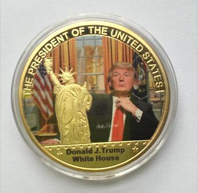 Title (ebay affiliate link): US President Donald Trump Eagle Commemorative Coin Flag White House Gold Gift