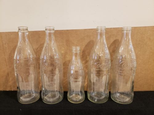 Title (ebay affiliate link): Vintage Coca Cola Coke Embossed Clear Glass Bottles 4 16oz and 1 7oz