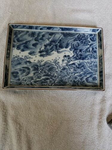 Title (ebay affiliate link): Antique Chinese Dragon Blue & White Porcelain 10" Tray Signed in Chinese NICE