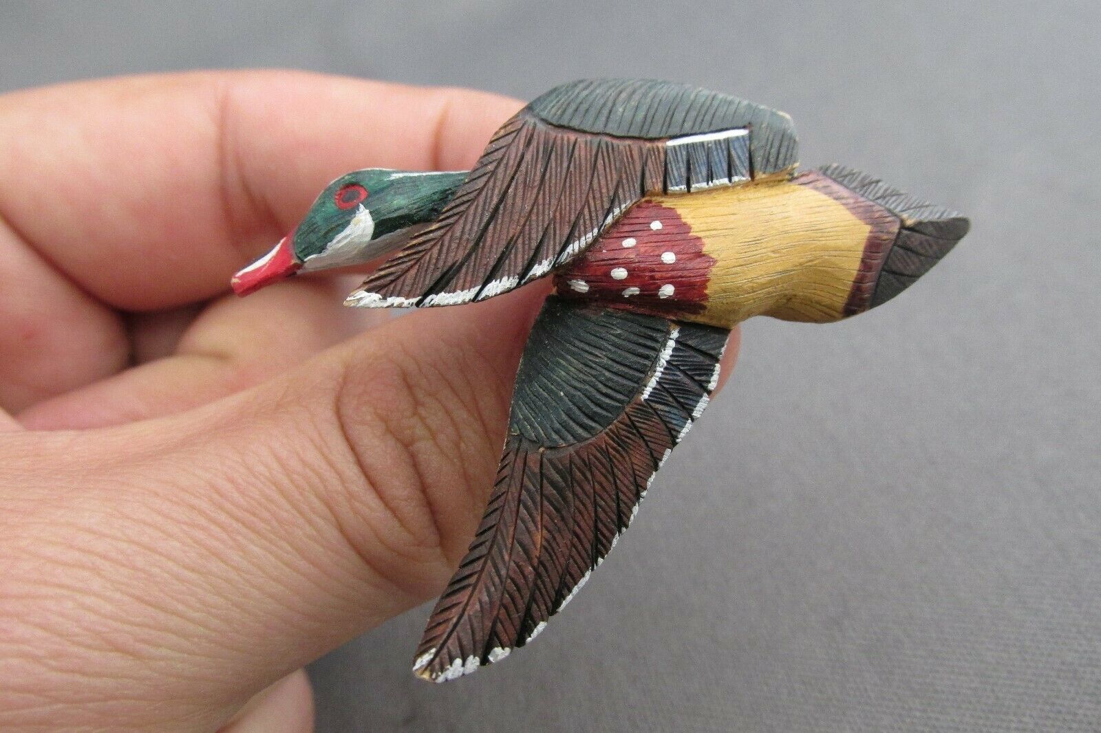 Title (ebay affiliate link): VINTAGE 1988 JOHN ELISER HAND CARVED WOOD HAND PAINTED AMERICAN WOOD DUCK PIN