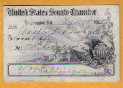 Title (ebay affiliate link): 1902 TICKET US Senate Chamber JH GALLINGER Senator NH