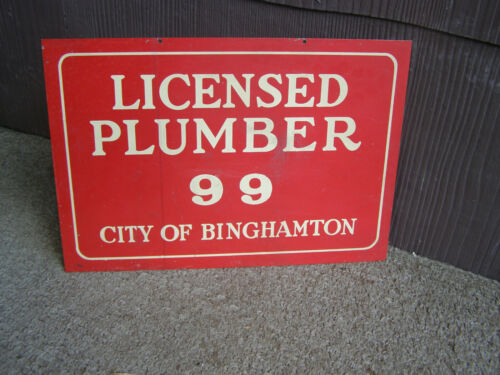 Vintage Plumber Sign License Binghamton NY Broome Co