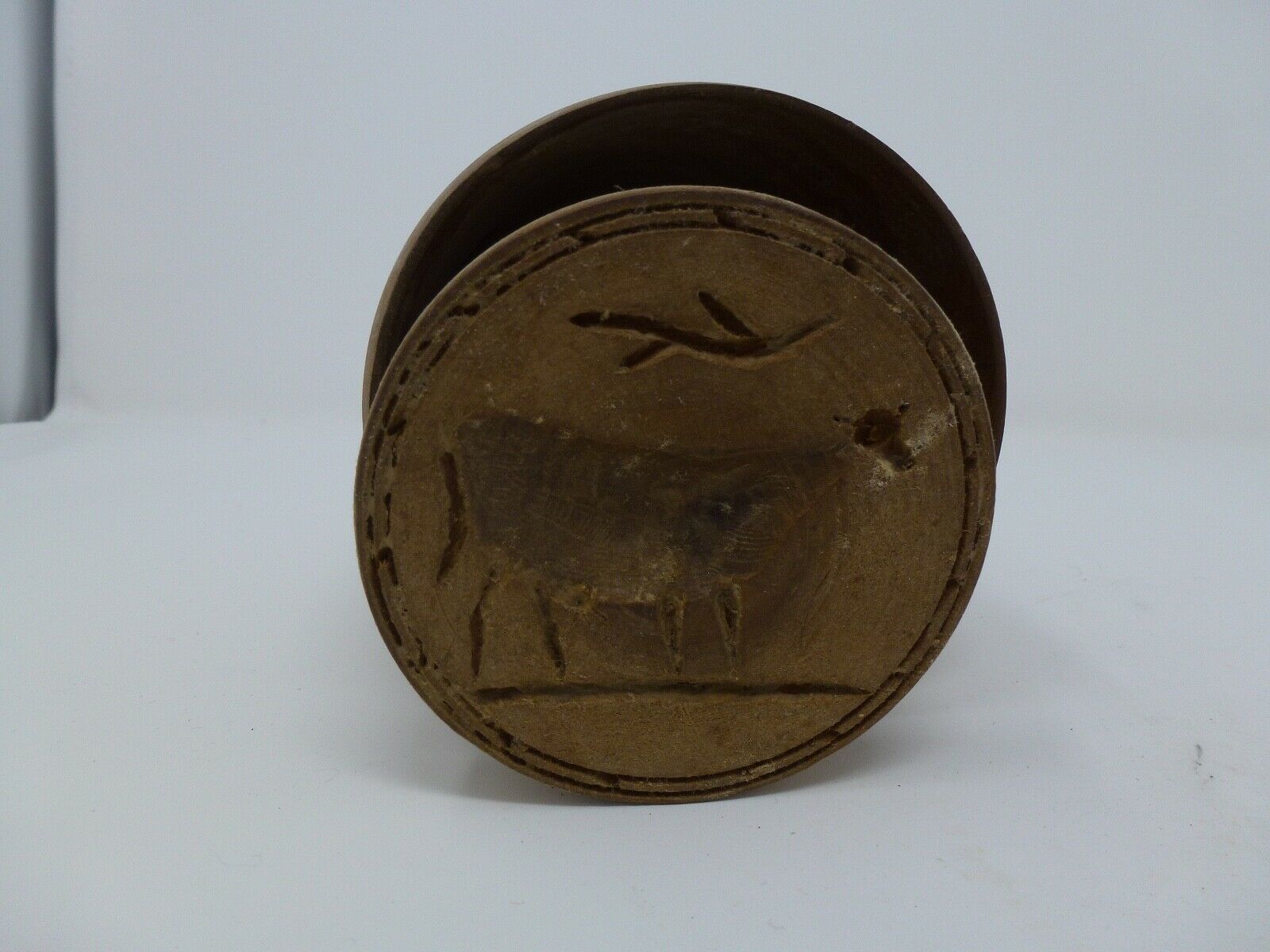 Title (ebay affiliate link): Primitive Wooden Round Cow Design Butter Mold