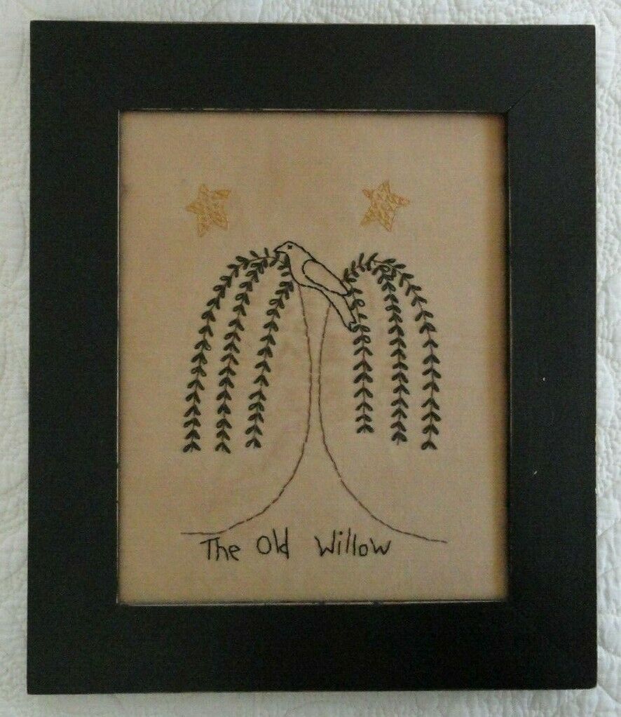 Title (ebay affiliate link): pRiMiTiVe Sample Sale~Framed Stitchery~The Old Willow~Crow~Stars~Tree~