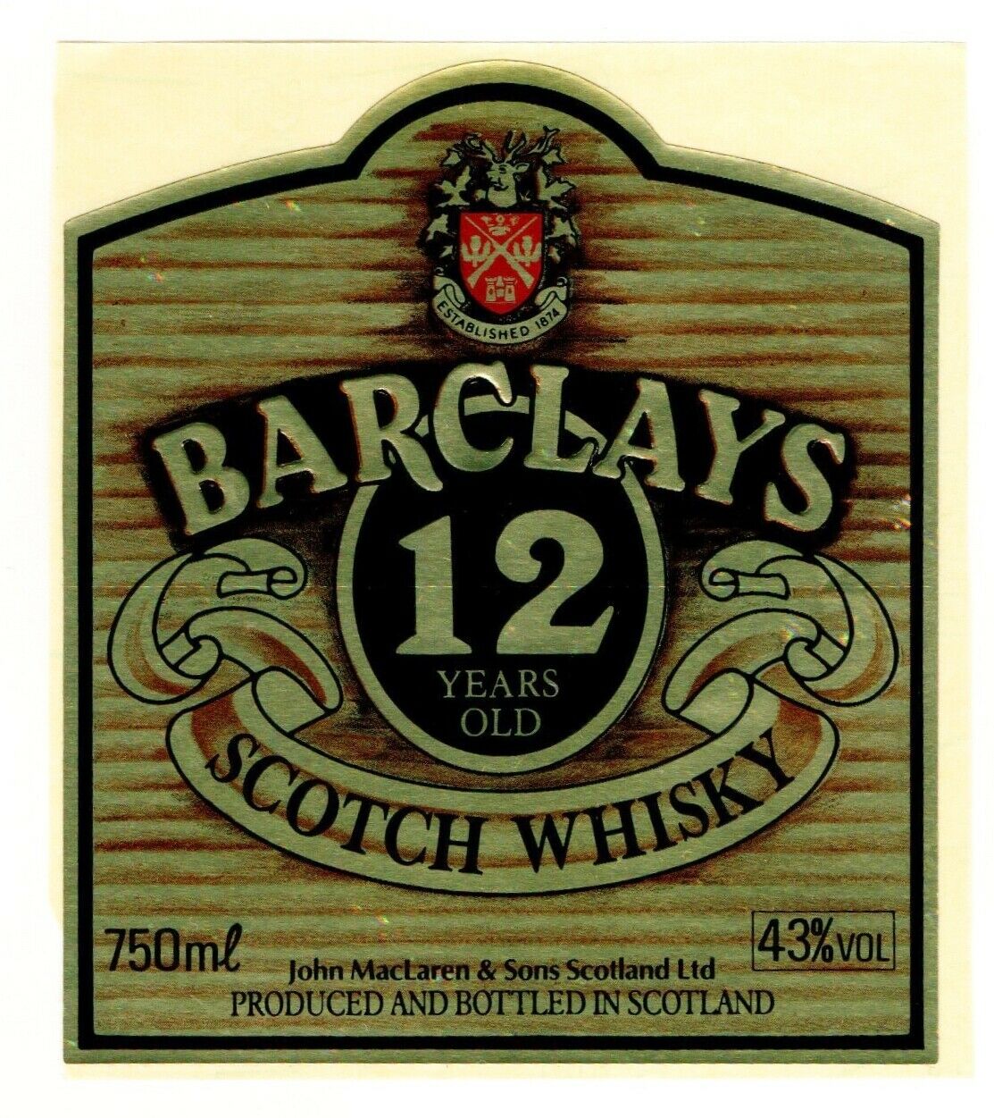 Title (ebay affiliate link): Barclays 12 Yrs Old Scotch Whisky label - John MacLaren & Sons Ltd see scan