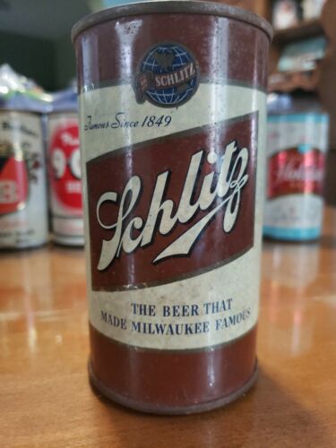 Title (ebay affiliate link): Vintage Schlitz Flat Top Beer Can Milwaukee, Wisconsin Internal Revenue Taxpaid