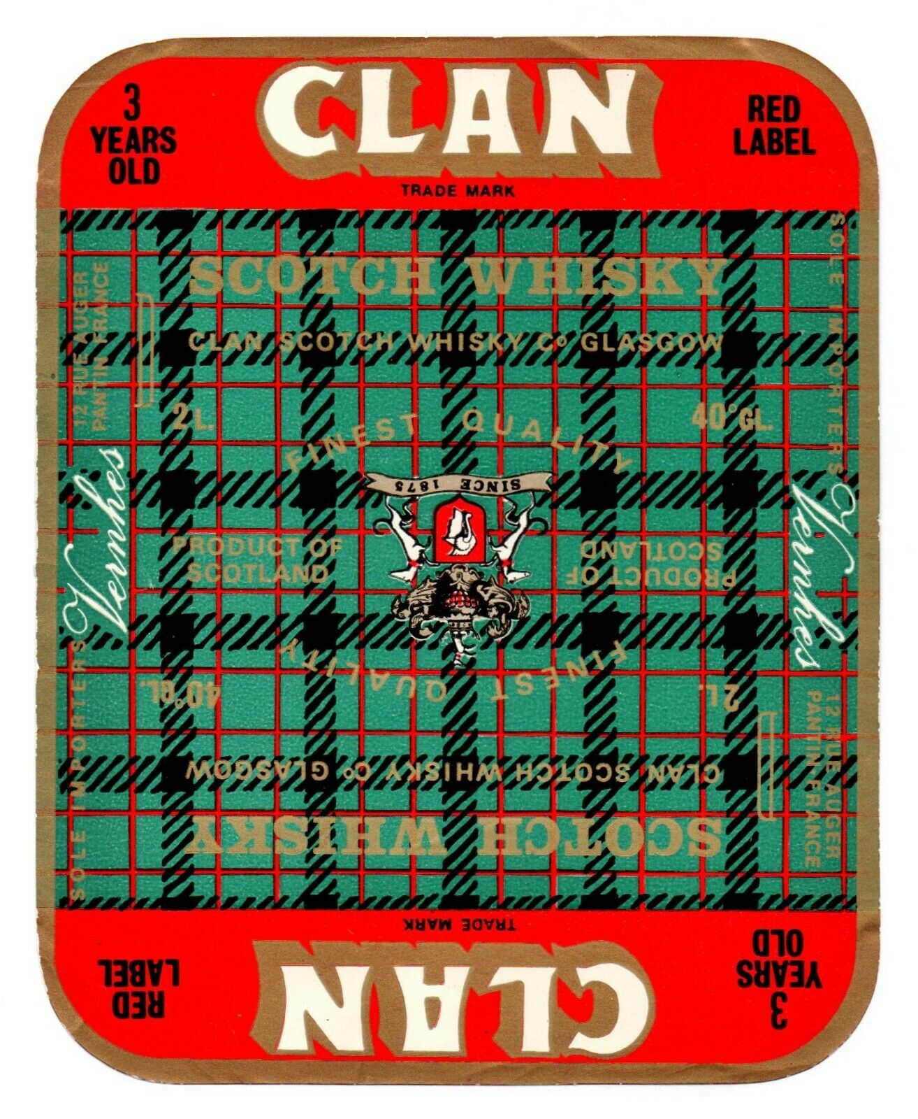 Title (ebay affiliate link): Clan Red Label - Large Whisky label - Clan Scotch Whisky Co., Glasgow see scan