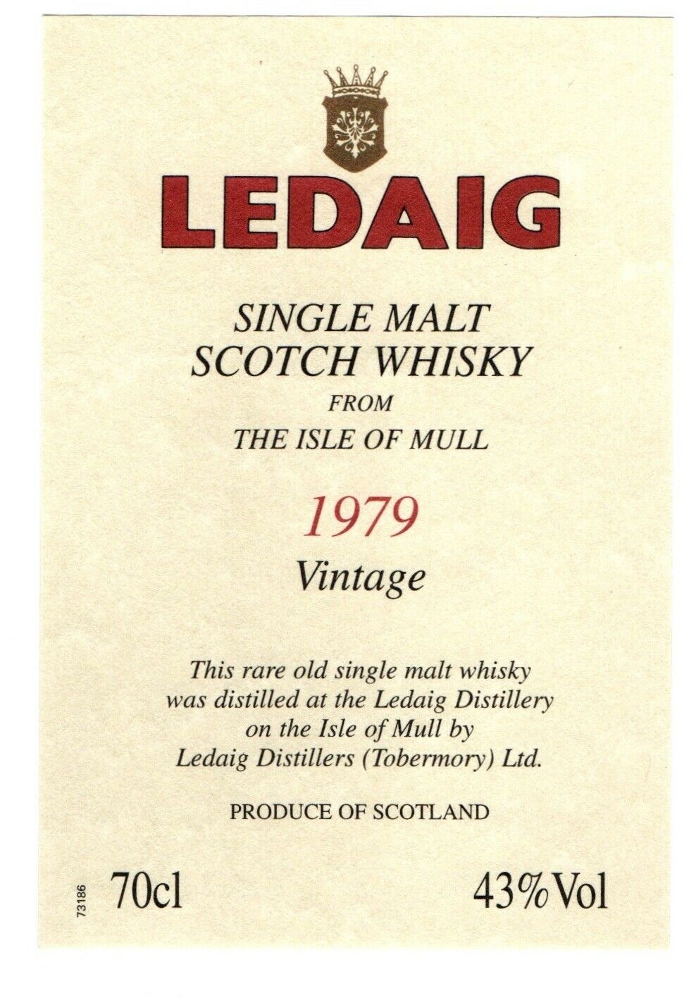 Title (ebay affiliate link): Ledaig Distillers (Tobermory) Ltd. - Ledaig 1979 Vintage Whisky label see scan