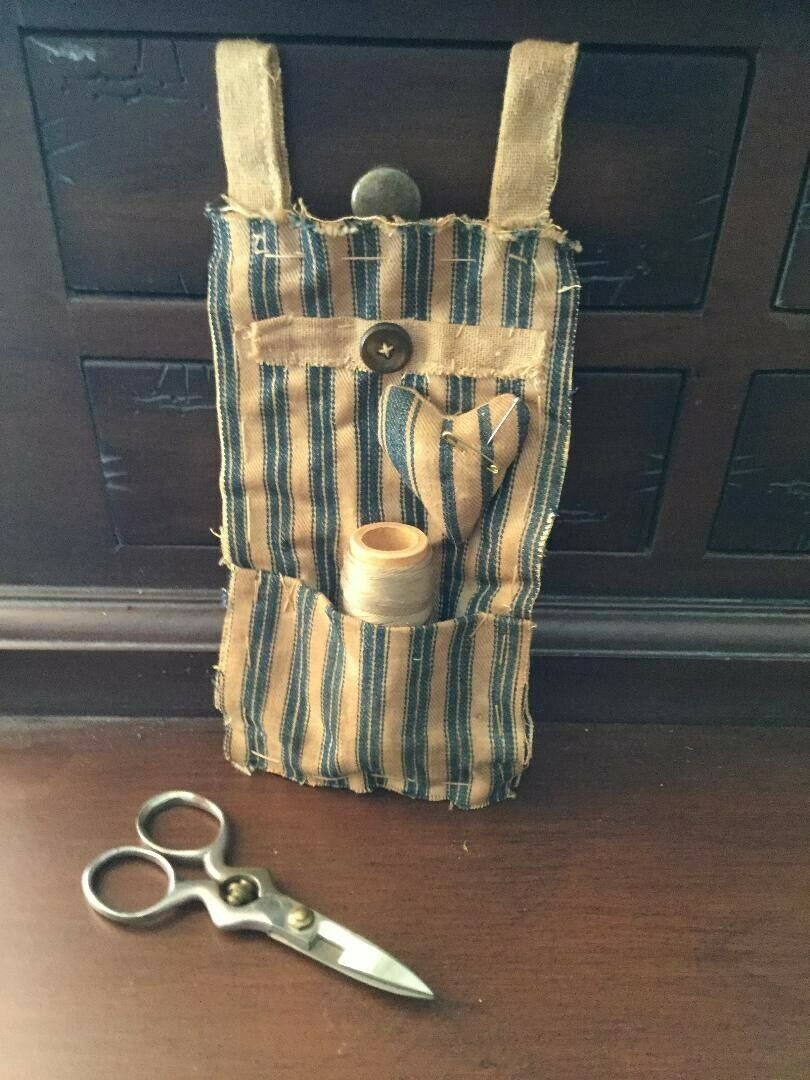 Title (ebay affiliate link): EARLY PRIMITIVE HANDMADE HANGING SEWING POCKET WITH ACCESSORIES