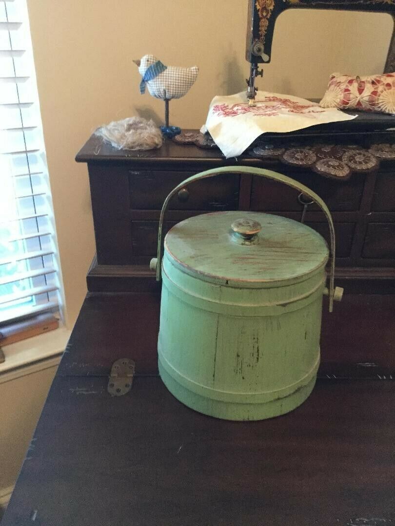 Title (ebay affiliate link): EARLY PRIMITIVE WOOD FIRKIN BUCKET WITH COVER AND HANDLE