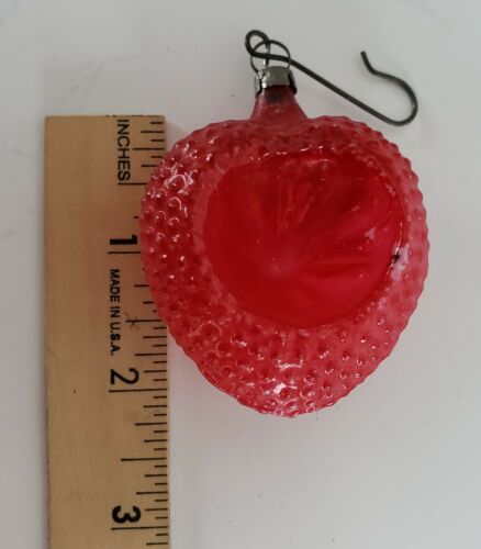 Antique German Red Heart Indent Glass Feather Tree Ornament