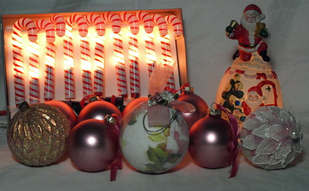 Title (ebay affiliate link): "VINTAGE" CHRISTMAS CANDY CANE LIGHTS-LIGHTED BELL-9 VICTORIAN PINK ORNAMENTS