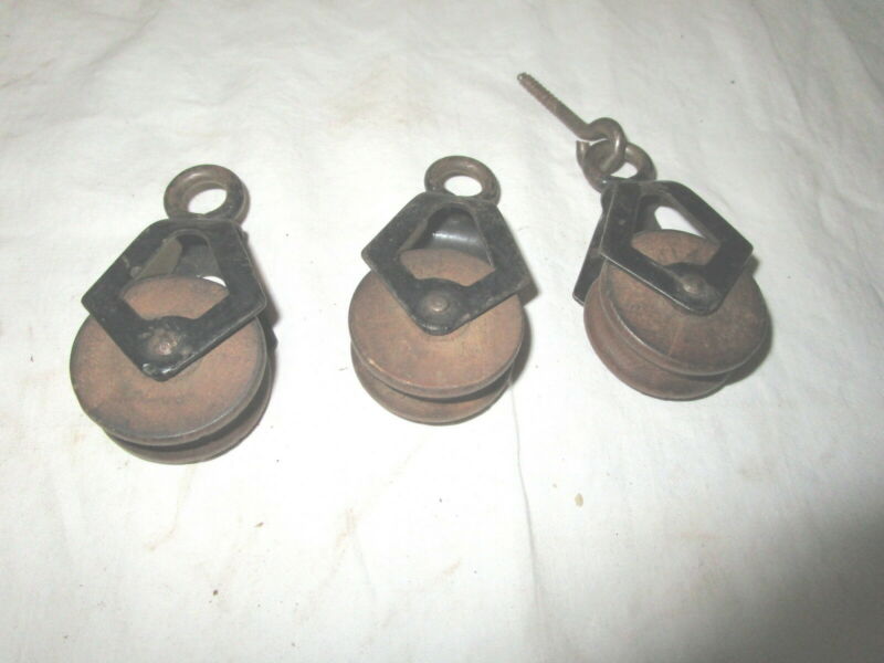 Title (ebay affiliate link): Three small antique vintage metal/wood pulleys