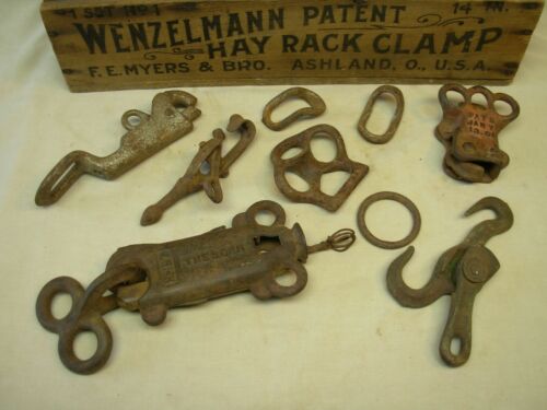 Title (ebay affiliate link): VTG CAST IRON HAY TROLLEY PULLEY SLING PARTS RELEASE PAT 1891 THE BOSS 10 PIECES