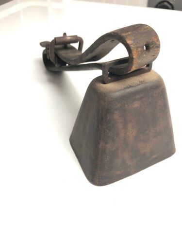 ANTIQUE METAL FARM BELL ORIGINAL LEATHER COLLAR CLAPPER LOUD ANIMAL COWBELL COW