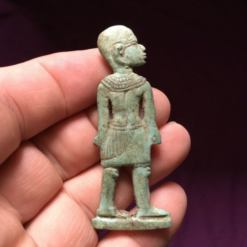 Title (ebay affiliate link): Rare ancient Egyptian blue glaze faience Pharaoh amulet, 300 bc