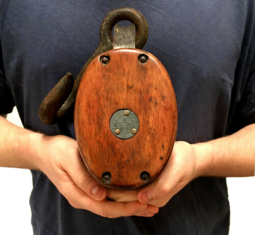 Title (ebay affiliate link): HUGE ANTIQUE 19th CENTURY 14" OAK & IRON HAND WROUGHT BLOCK & TACKLE, MAKERS TAG