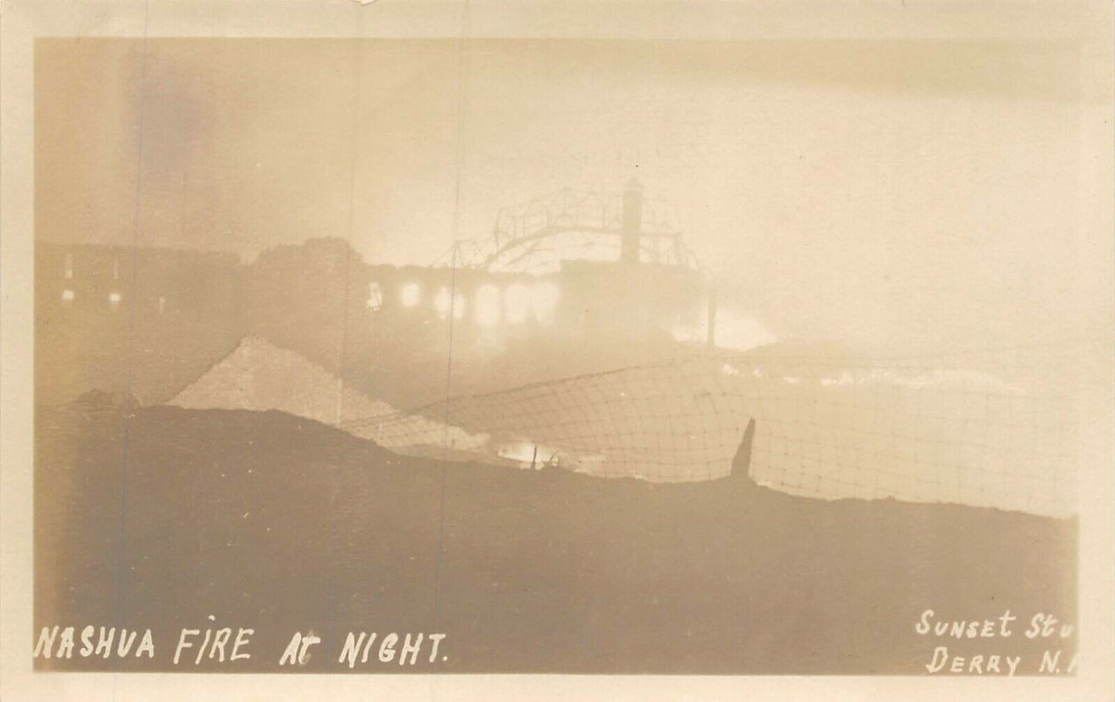 Title (ebay affiliate link): Nasahua, NH-Huge 1910 Fire at Night of a Freezer Company